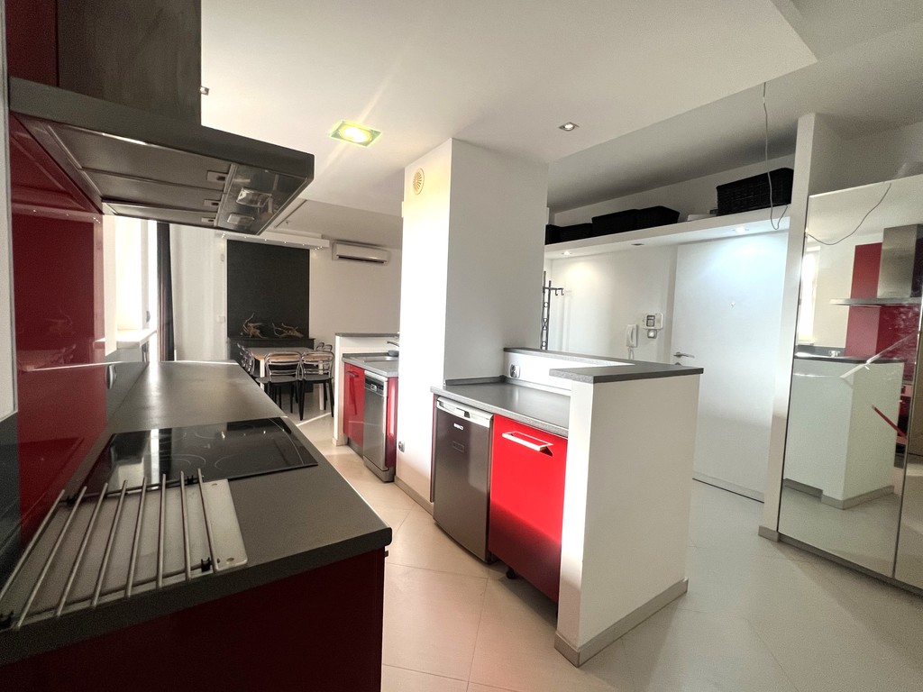 W kuchni AGD: lodówka, zmywarka, płyta indukcyjna, piekarnik, okap.