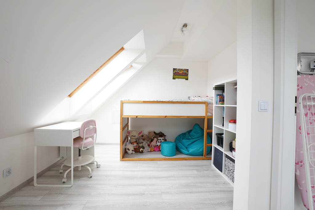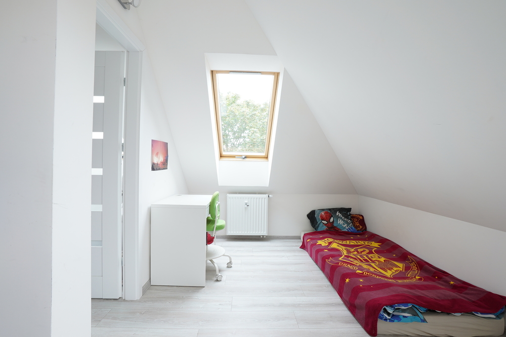• 1 pokój na drugim piętrze (idealny jako sypialnia, gabinet lub pokój młodzieżowy)