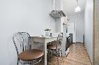 Mieszkanie jest umeblowane. Łazienka oraz kuchnia wyposażone są w niezbędny sprzęt AGD: chłodziarko-zamrażarkę, zlewozmywak, kuchenkę elektryczną, piekarnik oraz pralkę.