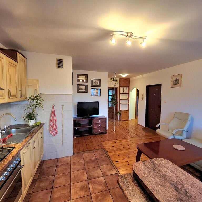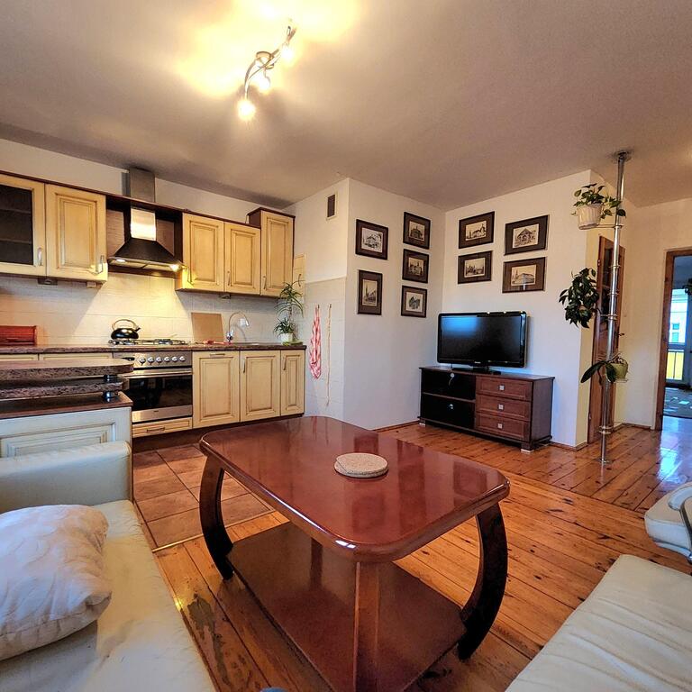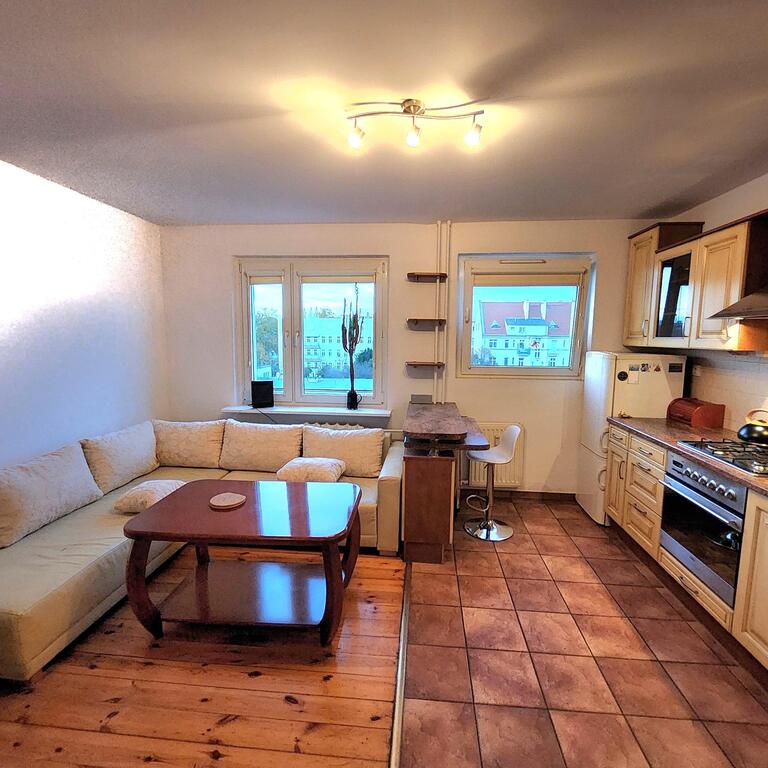 Do wynajęcia mieszkanie 3 pokojowe usytuoawane na 4 piętrze 5-piętrowego bloku. Na powierzchni 64m2 znajdują się : salon z aneksem kuchennym o łącznej powierzchni ok 20m2, duża sypialnia z wyjściem na balkon, mniejszy ok 10m2 pokój oraz łazienka z wc. W mieszkaniu znajduje się dużo pojemnych szaf. Jest ono wpełni wyposażone w meble i sprzęt AGD ( pralka, lodówka, zmywarka, TV ). Ściany malowane, na podłodze deska drewniana i terakota, okna PCV. Mieszkanie jest bardzo ciepłe i przytulne.Do kosztów wynajmu należy dodać opłaty za prąd, gaz do kuchenki gazowej oraz internet i TV -120zł.Blok znajduje się na terenie zamkniętym. Na obszernym podwórzu jest możliwość parkowania auta.W okolicy liczne sklepy, szkoły, komunikacja miejska ( autobusy i tramwaje).Polecam i zapraszam na prezentację.*powyższe informacje zostały sporządzone na podstawie oświadczeń i nie są ofertą w rozumieniu przepisów prawa - zalecamy ich osobistą weryfikację.