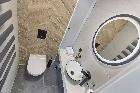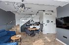 Na 1. poziomie salon z aneksem kuchennym. Kuchnia wyposażona w lodówkę (podblatową), piekarnik, zmywarkę, płytę elektryczną, pralkę w zabudowie. Osobna toaleta.