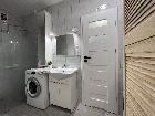 Łazienka z kabiną prysznicową oraz toaletą oddzieloną drzwiami. W łazience znajduje się nowy piec gazowy oraz pralka.