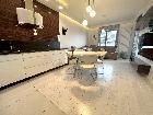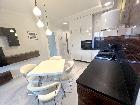 Salon z wyjściem balkon. Kuchnia w formie aneksu, wyposażona w wysokiej jakości sprzęt agd.