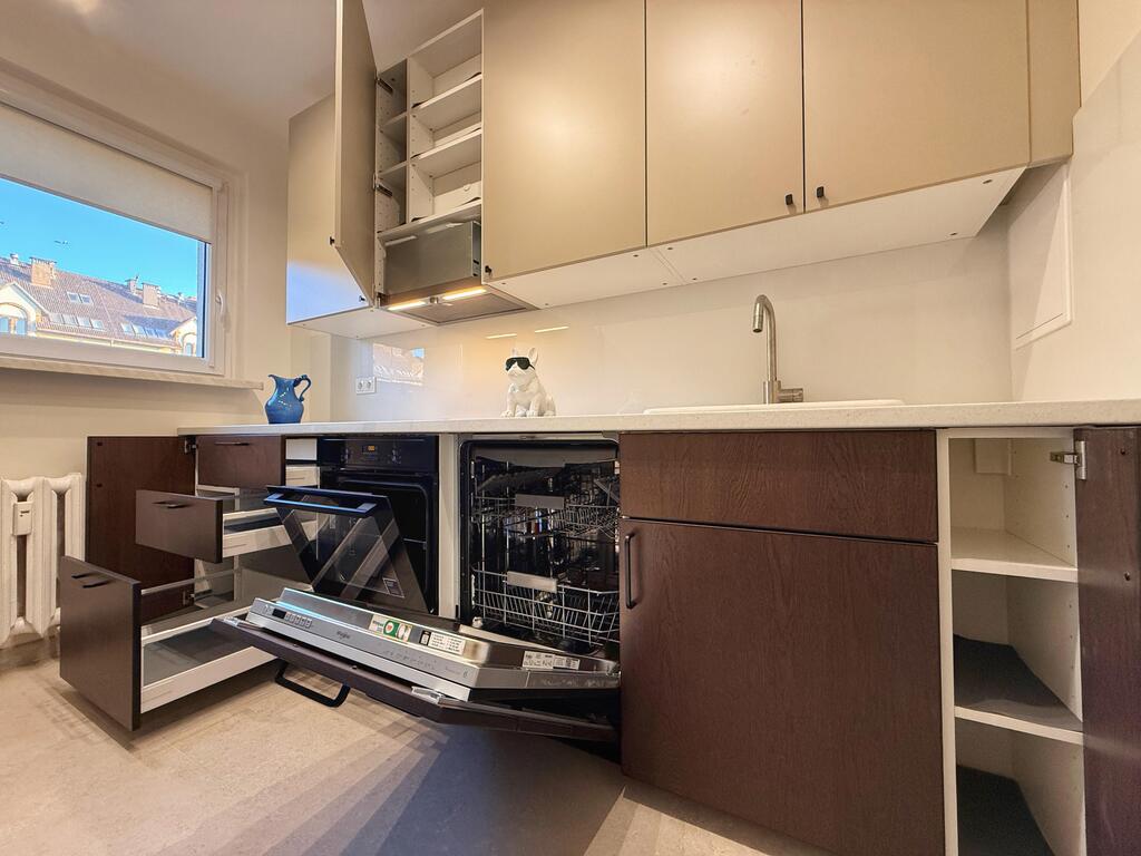 Funkcjonalna - w kształcie, który pozwolił na wyposażenie w pełne AGD oraz część jadalnianą ze stolikiem wraz z krzesłami. Wśród sprzętu AGD znajduje się lodówko-zamrażarka, płyta indukcyjna, piekarnik, zmywarka, okap kuchenny - pochłaniacz z podłączeniem do wentylacji. Okno kuchni skierowane jest na wschód, podobnie jak Salon.