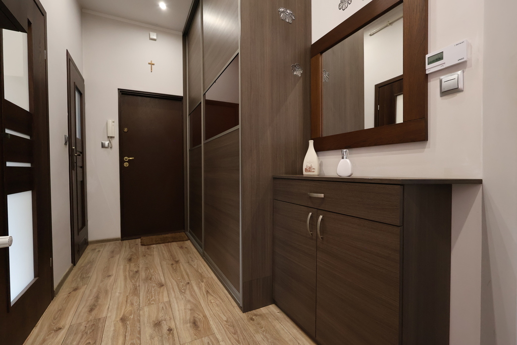 Mieszkanie kompletnie umeblowane, wygodne, z dużą ilością miejsca do przechowywania.