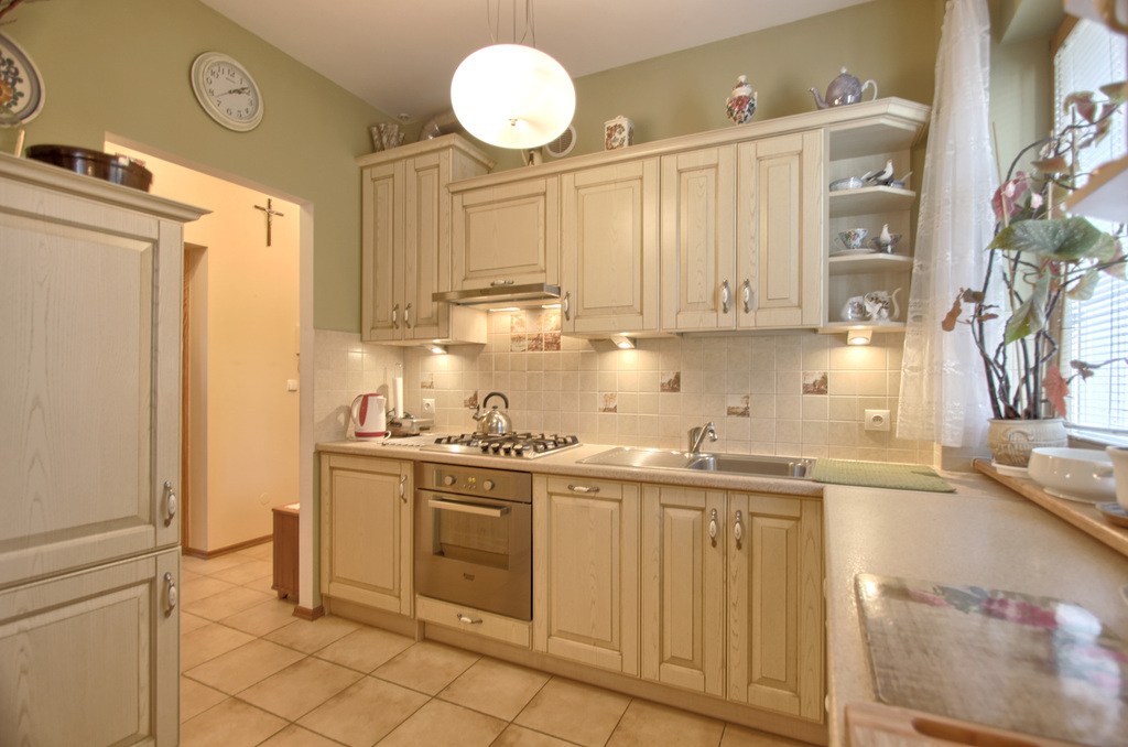 Mieszkanie jest całkowicie urządzone a kuchnia jest zabudowana meblami i wyposażona w sprzęt AGD: kuchenka gazowa z piekarnikiem, lodówka z zamrażarką, pralka, okap.