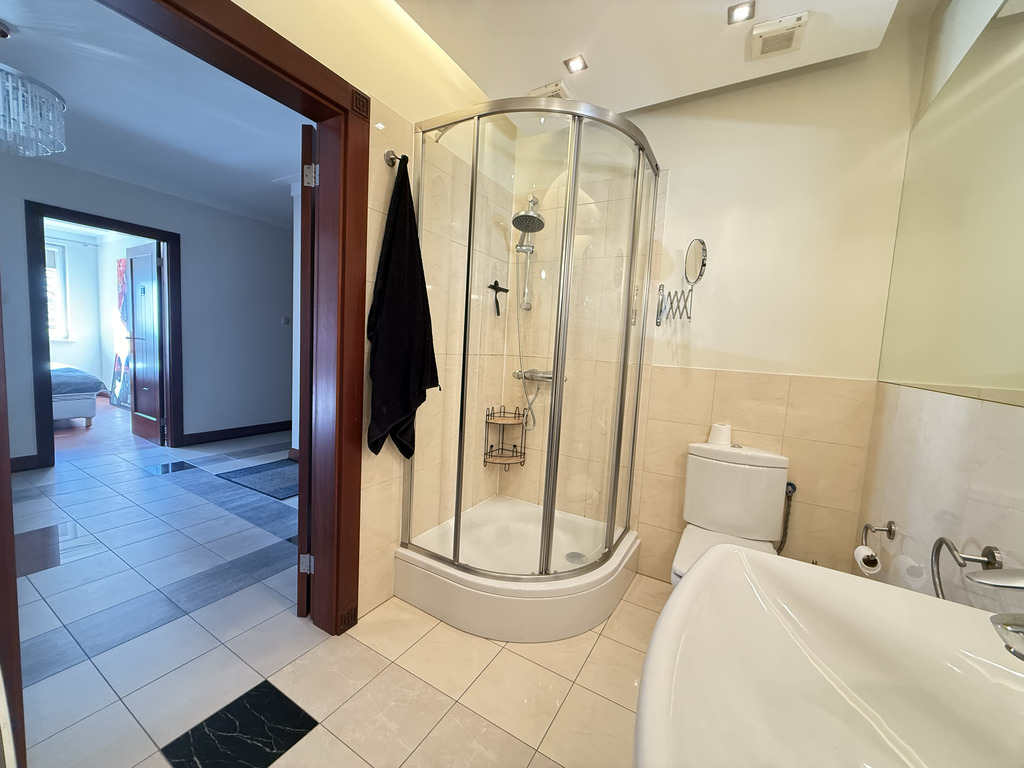 oraz dodatkowa duża łazienka z prysznicem z wejściem z hallu.