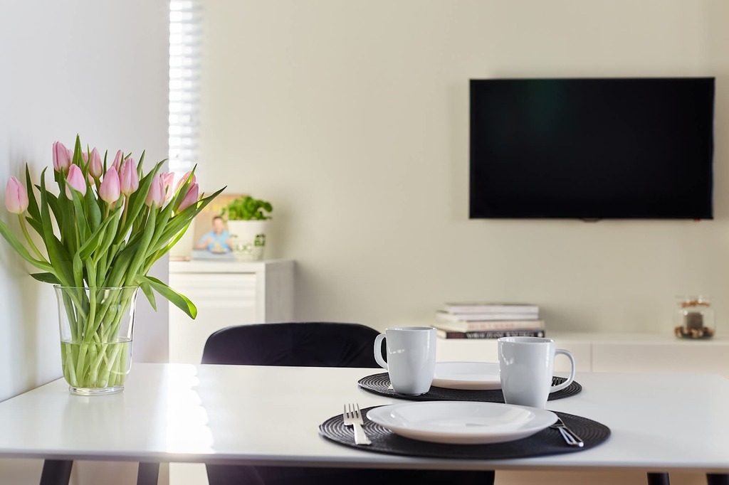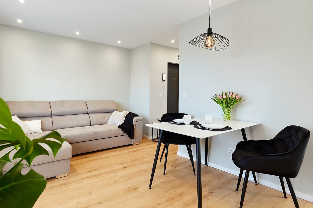 Mieszkanie jest w pełni umeblowane i wyposażone w sprzęt AGD: