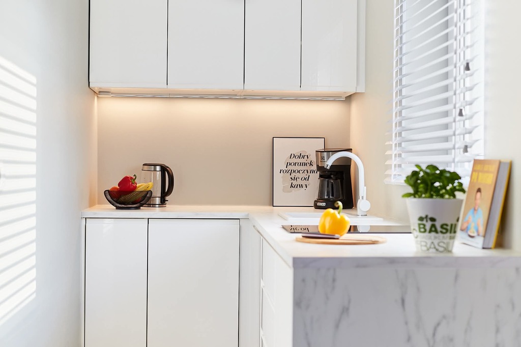 - kuchnia z płytą grzewczą, lodówką i zmywarką