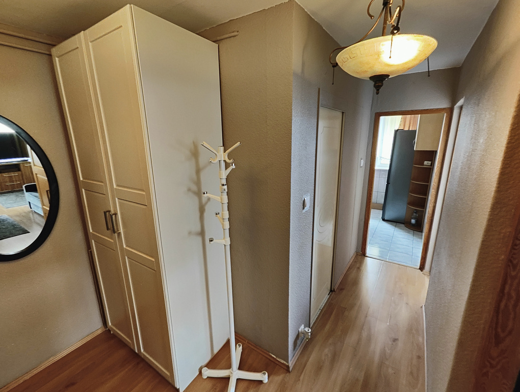 Na ww. powierzchnię składają się 3 pokoje (salon przechodni), gdzie z największego z nich jest wyjście na balkon od słonecznej, południowej strony. Dodatkowo do dyspozycji przyszłego najemcy dostępna jest widna i wyposażona kuchnia, łazienka z wc i pralką, a także przedpokój z dużą szafą. Mieszkanie wyposażone w meble i sprzęty, a także w takie rzeczy jak pościel, poduszki, kołdry, naczynia czy sztućce. Kuchnia również jest wyposażona w najpotrzebniejszy sprzęt (duża lodówka z zamrażalnikiem, zmywarka, piekarnik).