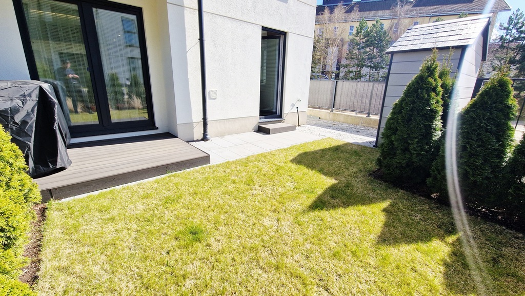 Do tego do mieszkania przynależy ogródek z domkiem gospodarczym (pełniący funkcję komórki lok.) oraz miejsce postojowe w hali garażowej (do której zjedziesz windą).