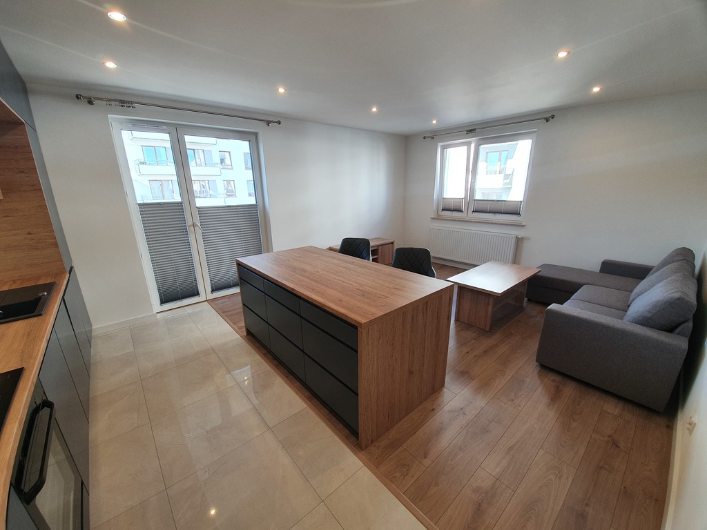 Na wynajem nowocześnie wykończone mieszkanie na ul. Powstańców Śląskich. Bardzo dobra lokalizacja - świetne połączenie z Centrum jak i z dzielnicami zachodnio południowymi Szczecina. Inwestycja z 2020 roku - nowoczesne budynki 6 piętrowe (mieszkanie znajduje się na 2 piętrze) z windami i garażami podziemnymi. Lokal ma 60,62 m2 powierzchni użytkowej i jest w pełni umeblowany (jak na zdjęciach). Obszerny salon z otwartą kuchnią i wyspą kuchenną o powierzchni 25,55m2, bardzo duża ilość szafek i szuflad. Kuchnia jest też wyposażona we wszystkie niezbędne sprzęty AGD (lodówka, zmywarka, piekarnik, płyta indukcyjna). Z salonu dodatkowo mamy wyjście również na balkon. W mieszkaniu są dwie sypialnie o zbliżonych metrażach po ok. 11 i 12 m2 (jedno umeblowane w łóżko i szafę, druga sypialnia ma tylko szafę - więc można samemu ustalić funkcję pokoju). Łazienka w nowoczesnej kolorystyce z dużą kabiną prysznicową, pralką umywalką i wc. W budynku ogrzewanie i woda ciepła z sieci miejskiej (nie ma w ogóle gazu). Do mieszkania przynależy komórka lokatorska (na tym samym piętrze) o pow. ok 3m2 oraz stanowisko w garażu podziemnym na 1 auto (za dodatkowe 350zł/miesiąc). Opłaty dodatkowe to: czynsz administracyjny 1 219,24 zł z zaliczkami na CO i wodę (wymiar przy 3 osobach) oraz prąd (według zużycia). Kaucja 5000złPolecamy do zamieszkania od zaraz zapraszamy do umówienia się na prezentację.*powyższe informacje zostały sporządzone na podstawie oświadczeń i nie są ofertą w rozumieniu przepisów prawa - zalecamy ich osobistą weryfikację.