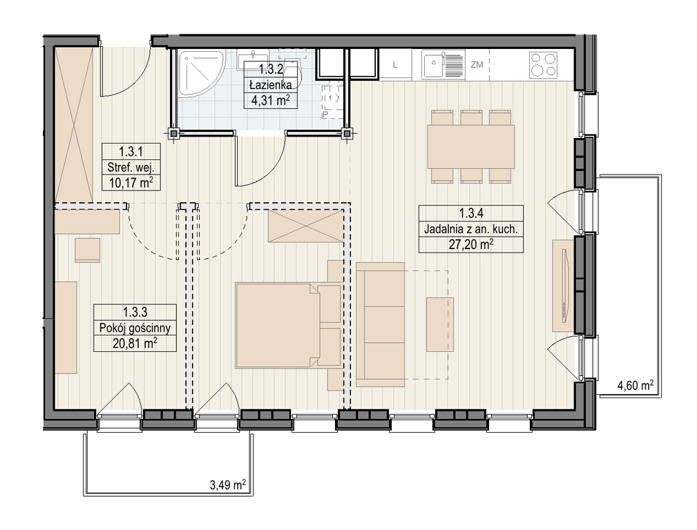 Polecamy Państwu apartament położony w urokliwej, nadmorskiej miejscowości Trzęsacz.Budynek znajduje się zaledwie ok. 500 m od pięknej plaży. Idealna oferta dla osób ceniących sobie wypoczynek nad morzem z dala od zatłoczonych kurortów typu Międzyzdroje czy Świnoujście.Proponowany apartament jest częścią inwestycji obejmującej 24 apartamenty o powierzchni od 29 m2 do 66,5 m2. Budynek stoi w miejscu pałacowej stajni i jest połączeniem nowoczesności z klimatem pobliskiego pałacu. Mur pruski oraz liczne drewniane elementy przepięknie nawiązują do byłej oraz istniejącej zabudowy.Apartament będący przedmiotem tej oferty znajduje się na piętrze i ma powierzchnię 62,49 m2. Składa się z salonu z aneksem kuchennym, dwóch sypialni, łazienki i przedpokoju.Z salonu oraz z dwóch sypialni jest wyjście na słoneczne balkony z ładnym widokiem na zieleń!Zapraszam do przejrzenia galerii. Znajduje się tam rzut lokalu oraz całej kondygnacji.Na terenie obiektu znajduje się plac zabaw oraz podgrzewany pompą ciepła basen tylko do użytku właścicieli!Deweloper planując inwestycję postawił na nowoczesność i ekologię. W każdym z apartamencie zastosowany został system rekuperacji, a na dachu zamontowane zostały panele fotowoltaiczne.Ogrzewanie apartamentów poprzez indywidualne piece gazowe.Czynsz wynosi 8,5 zł/m2 w tym utrzymanie wszystkich części wspólnych.Apartamenty oddawane są w stanie deweloperskim.Możliwość wykończenia 'pod klucz' w ramach dodatkowych funduszy.Na terenie inwestycji znajdują się 24 prywatne miejsca postojowe. Istnieje możliwość kupienia takiego miejsca za dodatkową kwotę 35 tyś. netto.Podana cena jest ceną netto. Cały projekt objęty jest stawką 23 % VAT.Zapraszamy na niewątpliwie miłą dla oka prezentację!!!*powyższe informacje zostały sporządzone na podstawie oświadczeń i nie są ofertą w rozumieniu przepisów prawa - zalecamy ich osobistą weryfikację.