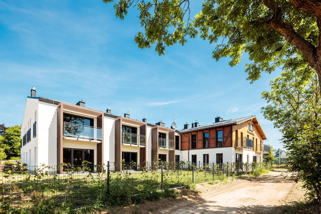 Na parterach są tarasy i ogródki a na piętrze balkon.