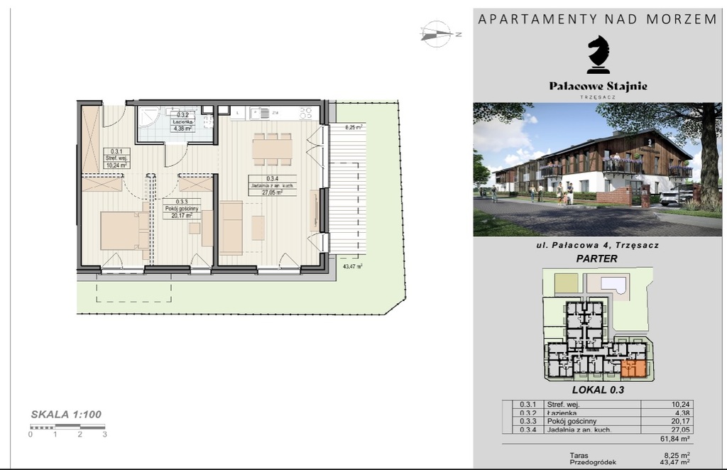 Pałacowe Stajnie to bazująca na historycznym obiekcie przypałacowym, inwestycja obejmująca 24 apartamenty o powierzchni od 29 m2 do 66,5 m2, w Trzęsaczu, w bliskiej odległości od pięknej plaży (około 500 metrów).
