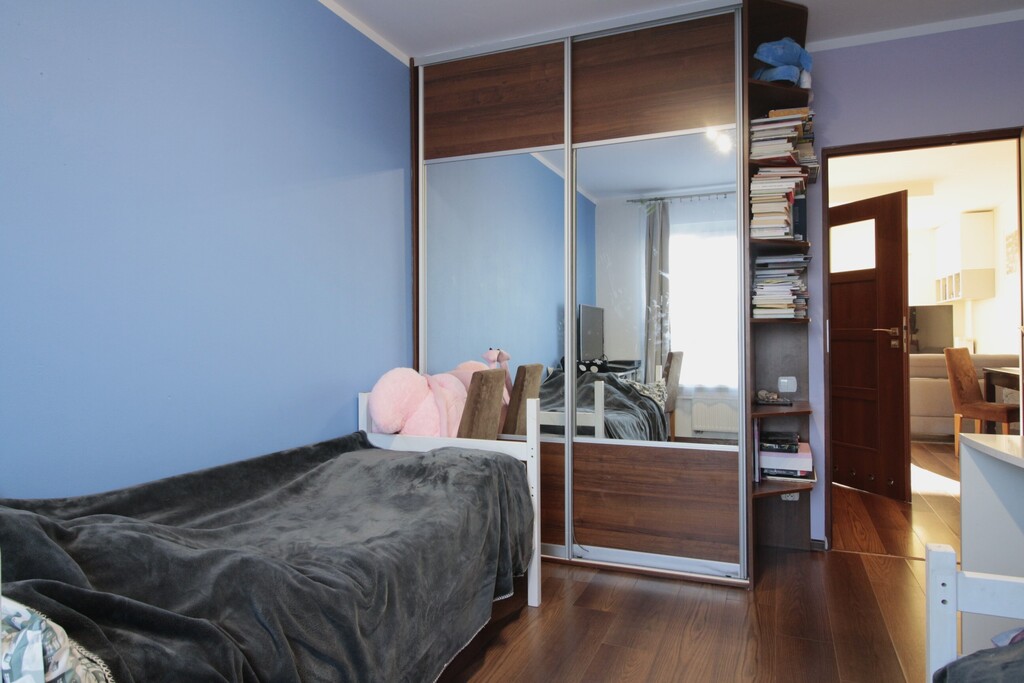 Mieszkanie jest gotowe do wprowadzenia, zadbane i bardzo funkcjonalne. Dwustronna ekspozycja okien zapewnia dobre doświetlenie przez cały dzień oraz naturalną wentylację. Dodatkowymi atutami są balkon oraz brak zabudowy przed oknami, co daje poczucie przestrzeni i prywatności.