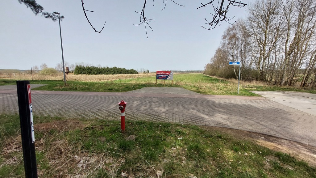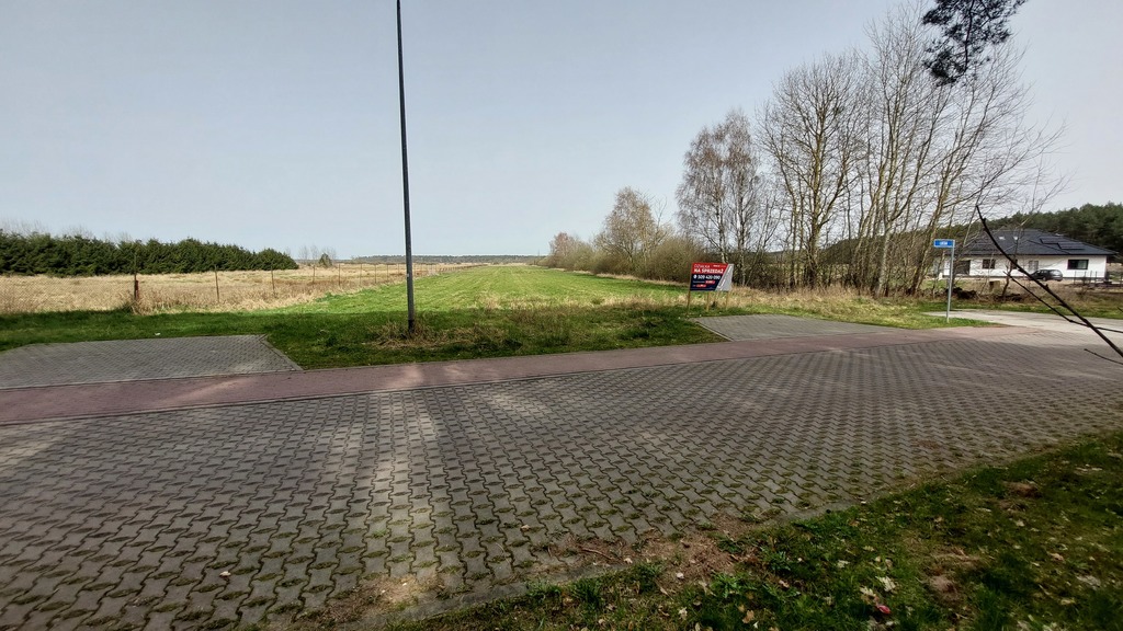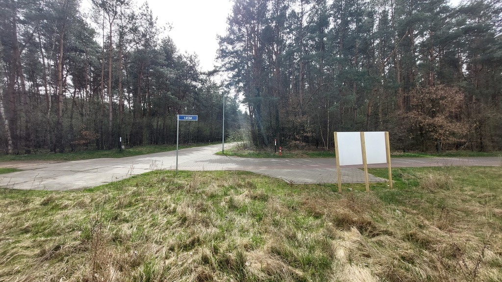 Do działek dojeżdżamy komfortową, szeroką, oświetloną drogą z płyt, która pod samą granicą zmienia się w polbruk.