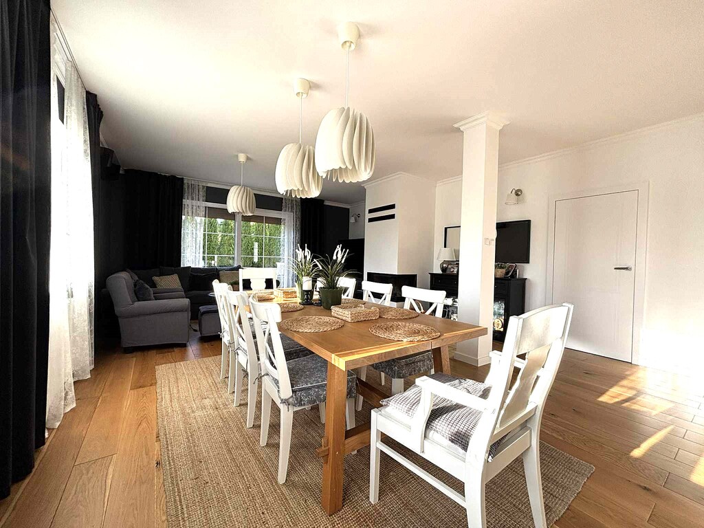 Mamy przyjemność przedstawić Państwu ofertę pięknego domu wolnostojącego położonego w malowniczej miejscowości Steklno.Lokalizacja:Oferowana nieruchomość znajduje się w pobliżu jeziora Steklno, które uznawane jest za jedno z najpiękniejszych i najbardziej malowniczych jezior w gminie Gryfino. W 2023 roku jakość wody w jeziorze została oceniona na doskonałą, a od 1 maja 2025 roku jezioro udostępnione zostało do wędkowania dla członków Polskiego Związku Wędkarskiego.Bardzo atrakcyjna i spokojna okolica sprzyjająca relaksowi, w sezonie letnim otwarte jest kąpielisko, na plaży znajduje się plac zabaw, boisko do siatkówki, przebieralnia, toalety, a także miejsce na ognisko.W niedalekiej odległości przebiega ścieżka rowerowa między Gryfinem a Swobnicą, która jest częścią szlaku Blue Velo, i prowadzi do Trzcińska-Zdroju. Trasa oferuje wiele widokowych miejsc, a także zwiedzanie zamku joannitów w Swobnicy.W miejscowości sklep spożywczy i przystanek autobusowy, bardzo dobry dojazd do Gryfina około 10 km, odległość od Szczecina około 35 km.W sąsiedztwie nieruchomości znajduje się nowa zabudowa mieszkaniowa jednorodzinna.Budynek znajduje się na lekkim wzniesieniu skąd rozpościera się widok na jezioro i okolicę. Dojazd do posesji dobry -drogą asfaltową, a następnie przez krótki odcinek żwirową drogą wewnętrzną.Opis technicznyBudynek wykonany w technologii tradycyjnej- parterowy, wolnostojący z poddaszem użytkowym i garażem w bryle budynku.Powierzchnia całkowita domu -198,50 m2, użytkowa- 128,90 m2, działka 777 m2.Dom o bardzo funkcjonalnym układzie pomieszczeń, jego przestrzeń wyraźnie dzieli się na strefę dzienną, strefę prywatną (nocną) i gospodarczą.Strefę dzienną tworzy duży salon z jadalnią, przy którym znajduje się otwarta kuchnia- łączna powierzchnia 50 m2.Z salonu wyjście na komfortowy taras (23 m2) i dalej do pięknego ogrodu. W salonie narożny kominek.Z całą pewnością ten salon jest wizytówką oferowanego domu i zachęca do spędzenia w nim wspólnego czasu.Przy salonie toaleta dla gości (2 m2). przy wejściu do domu wiatrołap (2 m2), holl (6 m2).Strefa nocna to : pokój kąpielowy z oknem (9 m2), garderoba z oknem (6 m2), przedpokój, trzy sypialnie 13, 5 m2 i 10, 5 m2.Z mniejszej sypialni wejście na poddasze, gdzie znajduje się trzeci pokój z garderobą (powierzchnia liczona po podłodze 70 m2 )- to miejsce, doskonale sprawdzi się jako gabinet czy pracownia. W dalszej części poddasza strych do przechowywania rzadziej używanych rzeczy.W części gospodarczej znajduje się garaż 18 m2 i pomieszczenie gospodarcze, w którym znajduje się piec, a także zaaranżowana została kuchnia letnia.Standard wykończeniaDom wykończony w wysokim standardzie konsekwentnie utrzymany w klasycznym i bardzo eleganckim stylu.Niespełna 5 lat temu w budynku przeprowadzony został kompleksowy remont w wyniku którego wykonane zostały następujące prace:- elewacja budynku została wykończona dekoracyjnym tynkiem w oryginalnym odcieniu, który świetnie współgra z kolorem stolarki okiennej, drzwiowej i kolorem pokrycia dachowego, a także jest bardzo dobrym tłem dla roślin ogrodowych,- wymienione zostały okna, zamontowane zostały rolety zewnętrzne (elektrycznie sterowane) a także moskitiery, parapety granitowe, piękne zewnętrzne drzwi dębowe,- w całym domu położone zostały deski dębowe w pięknym ciepłym kolorze, na poddaszu drewniane parkiet- ściany gładzone w efektownej kolorystyce, z dekoracyjnymi listwami przysufitowymi, które sprawiają, że wnętrze wygląda bardzo elegancko i luksusowo- solidne drzwi wewnętrzne firmy Porta z cichym domykiem- w każdym pomieszczeniu nowe grzejniki, a także klimatyzacjaŁazienka i wc wykończone w pastelowej kolorystyce, sanitariaty dobrej klasy.W cenie domu zostaje ponadczasowa drewniana zabudowa meblowa w kuchni wraz z kompletnym wyposażeniem, meble znajdujące się w wiatrołapie, zabudowa garderoby i meble w łazience.Właściciel za dodatkową opłatą może pozostawić wszystkie meble widoczne na zdjęciach, oferta godna uwagi, gdyż każdy z elementów jest w bardzo dobrym stanie i wysokiej jakości (meble w salonie drewniane), a dobrane kolory i materiały tworzą spójną całośćOgródPosesja ogrodzona, zastosowano ogrodzenie, które komponuje się z architekturą i otoczeniem domu. Wjazd przed budynkiem wyłożony polbrukiem, dwie bramy wjazdowe elektrycznie sterowane, brama garażowa firmy Horman z napędem.Piękny ogród zaprojektowany przez architekta krajobrazu. Bardzo przemyślana koncepcja, która pozwoliła na efektowne i funkcjonalne rozmieszenie roślin, tarasów, kącika wypoczynkowego, altany, a także doboru oświetlenia, które stwarza magiczną atmosferę po zmroku .Nad tarasem zamontowana została duża, elektrycznie sterowana markiza, co pozwala na korzystanie ze strefy wypoczynku nawet w słoneczne lub lekko deszczowe dni. W ogrodzie zainstalowano system nawadniania trawnika, a także kosiarkę samojezdną, która pozostaje w cenie.Na posesji także pomieszczenie gospodarcze na sprzęt ogrodniczy itp. Za dodatkową opłatą właściciel może pozostawić meble ogrodowe .MediaBudynek podłączony do sieci wodociągowej i kanalizacyjnej, energia elenktyczna, światłowód. Źródło centralnego ogrzewania piec elektrycznyfirmy ,,Kospel?, do którego można podłączyć pompę ciepła tworząc system hybrydowy. Dodatkowo kominek z wyprowadzonym kanałem dystrybucji ciepłego powietrza. Klimatyzacja w całym budynku. Zainstalowano zmiękczacz wody. Podatek od nieruchomości wynosi 600 zł rocznie.Krótki okres wydania. Prezentacja w czasie dogodnym dla klientów.Polecamy to wyjątkowy, klimatyczny dom w bardzo atrakcyjnej cenie- tylko 999.000 zł*powyższe informacje zostały sporządzone na podstawie oświadczeń i nie są ofertą w rozumieniu przepisów prawa - zalecamy ich osobistą weryfikację.
