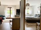 - salonu z aneksem kuchennym: w pełni wyposażony, z nową rozkładaną sofą, stolikiem kawowym, szafą, komodą, stolikiem pod TV oraz stołem z 4 krzesłami; aneks kuchenny wyposażony