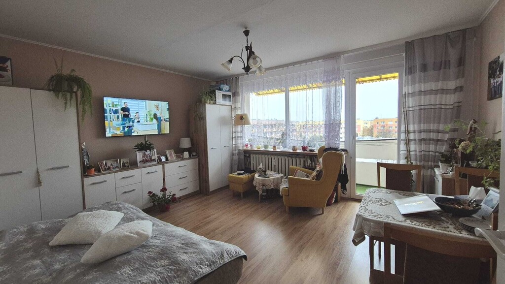 - przestronnego, jasnego salonu z wyjściem na balkon,