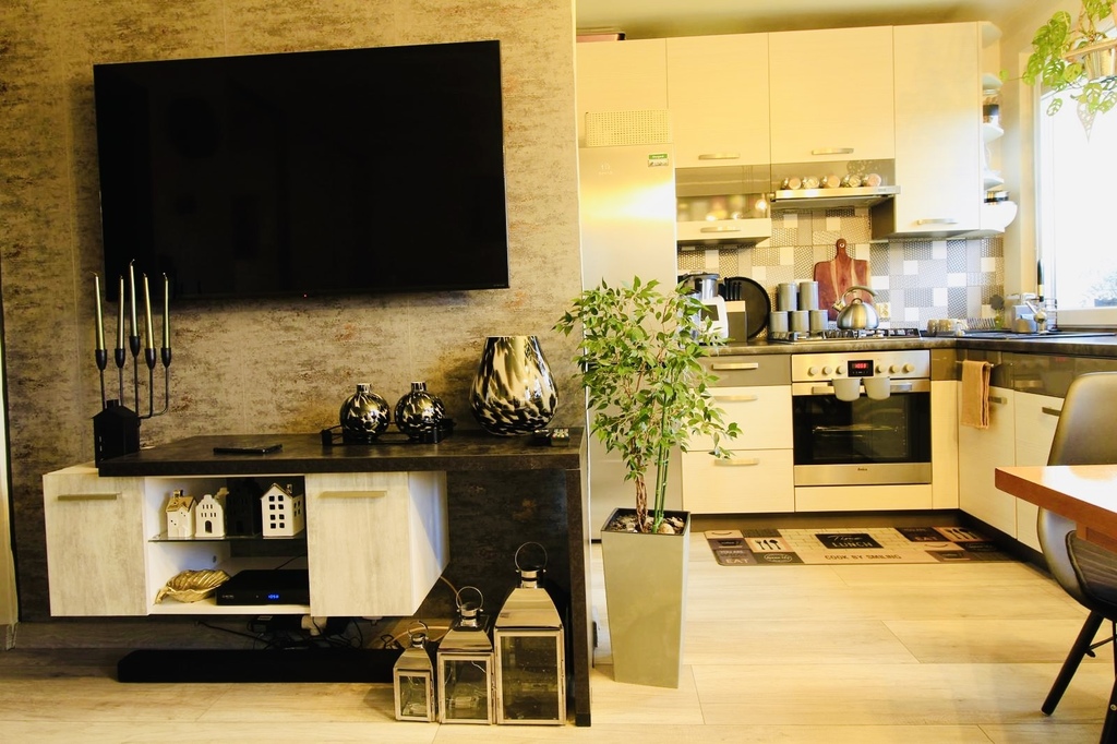 - Układ: pokój, otwarta kuchnia, przedpokój, toaleta, łazienka z prysznicem