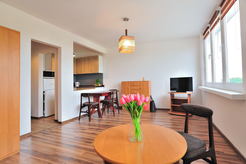 Wyłącznie u nas prezentujemy Państwu ofertę wynajmu kawalerki położonej przy ul. Niemierzyńskiej na os. Niebuszewo.Mieszkanie wolne od 1 marca.OPIS MIESZKANIA: Do wynajęcia komfortowa i widna kawalerka. Mieszkanie znajduje się na ostatnim piętrze 10-piętrowego wieżowca, jest w pełni umeblowane i wyposażone. Jego całkowita powierzchnia wynosi 27,37 m2. Ogrzewanie i ciepła woda z sieci miejskiej. W mieszkaniu znajduje się pokój, otwarta kuchnia, łazienka z WC oraz przedpokój. Łazienka wyposażona jest w kabinę prysznicową, umywalkę, pralkę, WC i grzejnik drabinkowy. Pokój umeblowany jest w rozkładaną kanapę, szafę na ubrania, dwa stoliki z krzesłami oraz dwie komody - na jednej z nich stoi telewizor. Kuchnia składa się z mebli, lodówki z zamrażalnikiem, kuchenki elektrycznej dwupalnikowej, mikrofalówki, czajnika.OTOCZENIE: W pobliżu prezentowanego mieszkania znajduje się Muzeum Techniki i Komunikacji, Park Kasprowicza, Technopark Pomerania, liczne punkty handlowo - usługowe (piekarnia, fryzjer, żabka, drogeria). Zaledwie 110 metrów jest do przystanku autobusowego linii nocnej oraz przystanku tramwajowego, a 350 metrów - do przystanku autobusowego linii dziennychKOSZTY: Przy terminowej płatności, do 1700 zł czynszu najmu należy doliczyć ok. 675 zł czynszu administracyjnego + opłaty za prąd wg zużycia. (UWAGA: Od 1 sierpnia, czynsz najmu wzrośnie o 100 zł).Zapraszam na prezentację, klucze w biurze.*powyższe informacje zostały sporządzone na podstawie oświadczeń i nie są ofertą w rozumieniu przepisów prawa - zalecamy ich osobistą weryfikację.